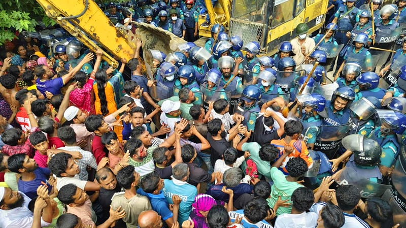 খুলনার মুক্তিযোদ্ধা কলোনিতে উচ্ছেদ অভিযানকে কেন্দ্র করে পুলিশ ও বাসিন্দাদের মধ্যে সংঘর্ষের ঘটনা ঘটেছে। এই সংঘর্ষে সাংবাদিক, পুলিশ সদস্য এবং স্থানীয় বাসিন্দা সহ অন্তত ৩৫ জন আহত হয়েছেন। রবিবার সকালে খুলনার বাস্তুহারা এলাকায় এই ঘটনা ঘটে।