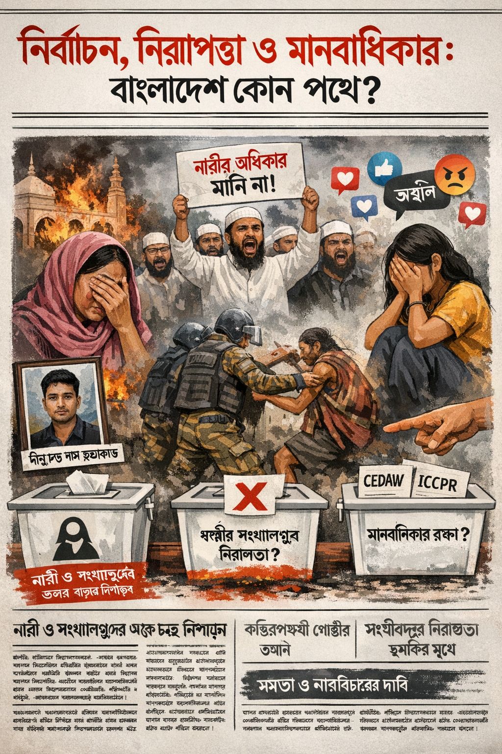 আগামী ১২ ফেব্রুয়ারি বাংলাদেশে অনুষ্ঠিত হতে যাচ্ছে আগস্ট ২০২৪-এর ঐতিহাসিক ‘মনসুন বিপ্লব’-এর পর প্রথম জাতীয় সংসদ নির্বাচন। এই নির্বাচন কেবল একটি সাংবিধানিক প্রক্রিয়া নয়; এটি হবে বাংলাদেশ কোন পথে হাঁটবে—গণতন্ত্র, মানবাধিকার ও অন্তর্ভুক্তিমূলক রাষ্ট্রের পথে, নাকি ভয়, বৈষম্য ও নিপীড়নের পুরনো চক্রে ফিরে যাবে—তার একটি নির্ধারণী মুহূর্ত।